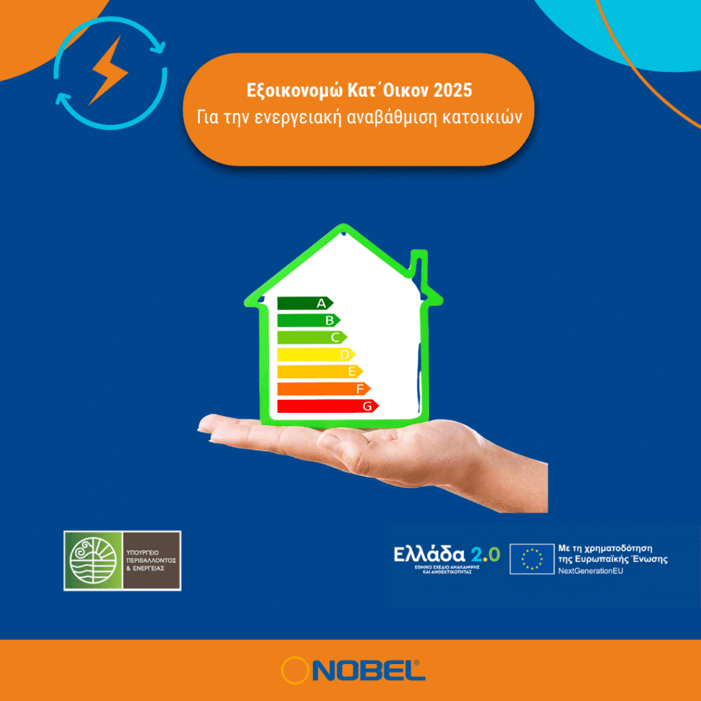 Επωφεληθείτε από το πρόγραμμα «Εξοικονομώ 2025» με την υποστήριξη της IQ Solar — του επίσημου αντιπροσώπου Nobel στην Ελλάδα.